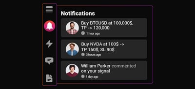 يمكن الحصول على إشعارات الوصول للأهداف ووقف الخسارة عند متابعة التوصية، فمثلًا إذا قررت أن تطبق توصية في حساب التداول الخاص بك، قم بمتابعتها وسيصلك إشعارات حولها، إشعارات وصول الأهداف، الوصول لوقف الخسارة وأيضًا إشعارات الإغلاق اليدوي. يمكنك متابعة ما يصل إلى 3 توصيات بشكل مجاني.
